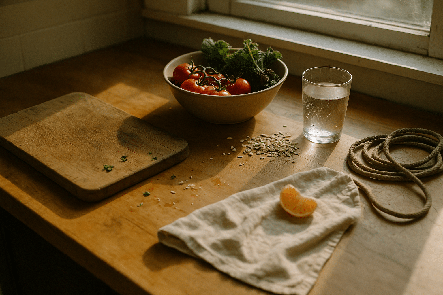 Momentum grows when the next action is simple and visible. Over the coming two weeks, choose a light structure and repeat it rather than chasing variety. Week 1: add one vegetable to lunch, walk 15 minutes after dinner, protect a 30-minute wind-down, and try a two-minute breathing break twice daily. Week 2: repeat the above, add one full-body strength session of 20–25 minutes, swap one sweetened drink for water with citrus, and set a consistent wake time.