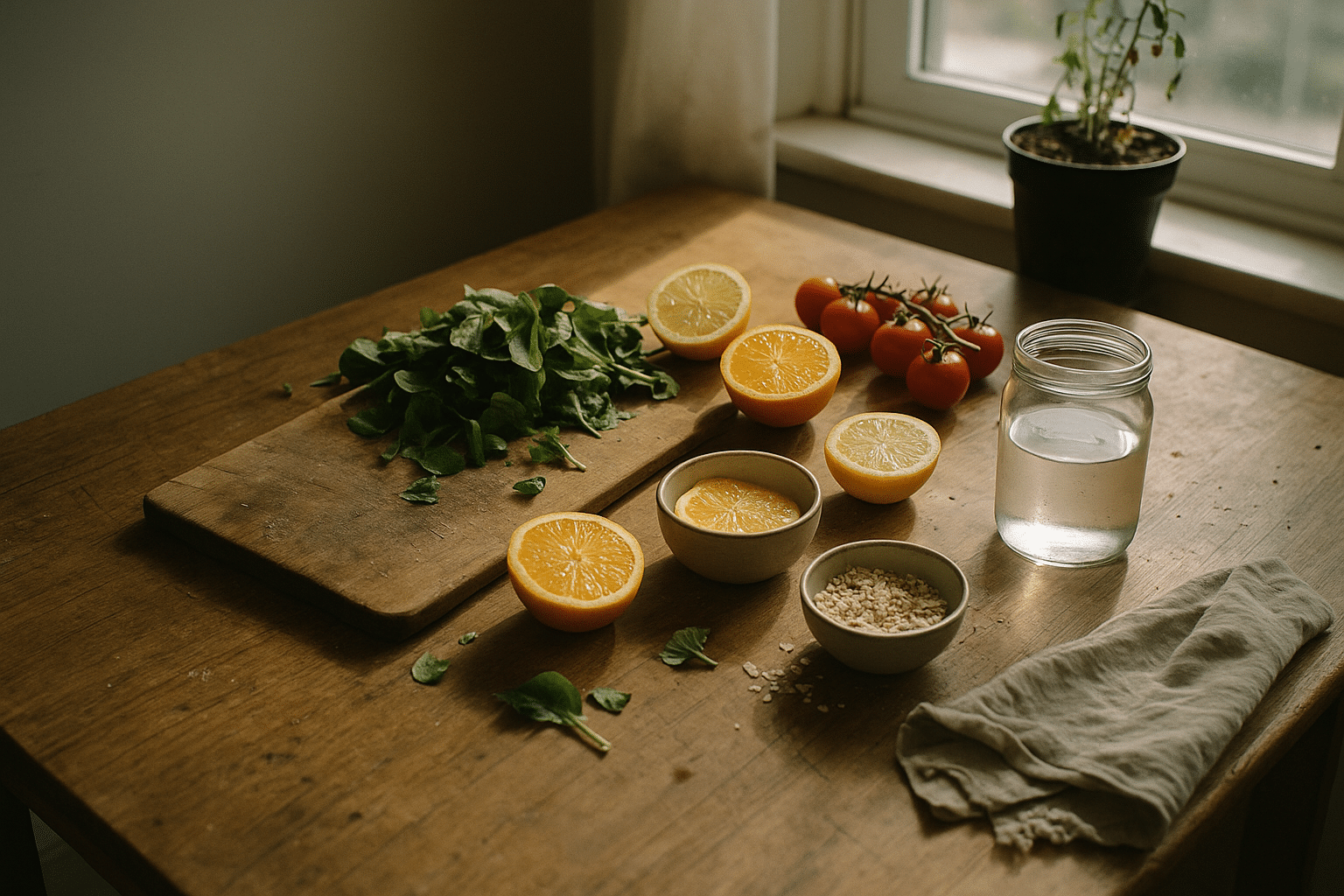 Shop with structure: plan a short list of “always” items that assemble quickly. Examples include leafy greens, frozen mixed vegetables, eggs or legumes, whole grains like oats or brown rice, canned fish or beans, and nuts or seeds. Keeping defaults on hand means even a hectic evening can produce a balanced bowl in 10 minutes. Hydration also underpins energy and cognition; a simple check is pale-straw urine during the day. Flavor water with citrus slices or herbs if that nudges you to drink more.